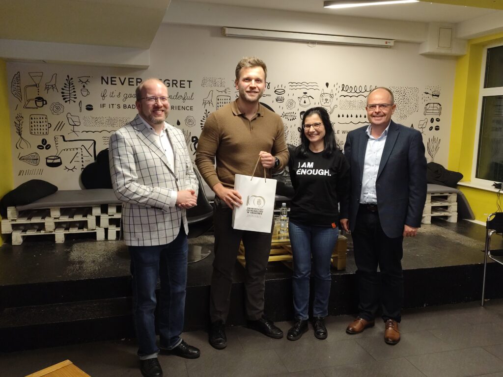 Nie było by to możliwe, gdyby nie nasi niezwykle operatywni studenci ze Stowarzyszenia AdMeritum oraz promotorka całego projektu dr Agnieszka Żak. Nie bez znaczenia było zaangażowanie naszej Katedry z prof. Krzysztofem Machaczką na czele. Jednak to wszystko nie odbyłoby się gdyby nie studenci kierunku Zarządzanie Międzynarodowe, którzy zechcieli spędzić z nami wspólny czas w znakomitej, swobodnej atmosferze.