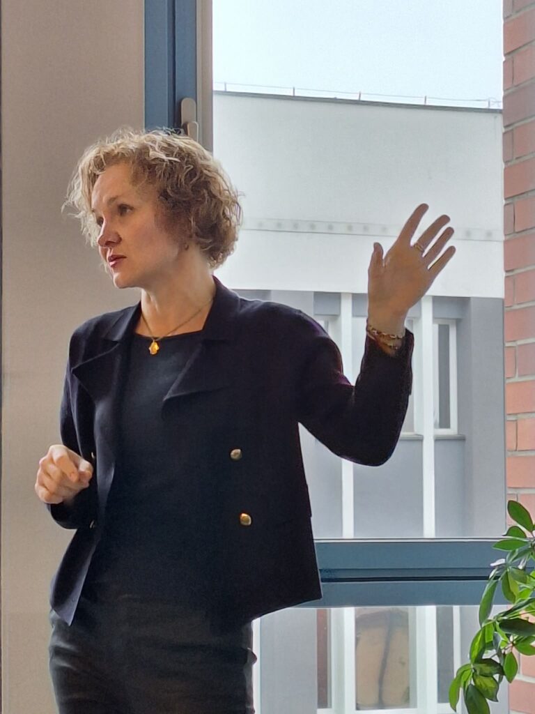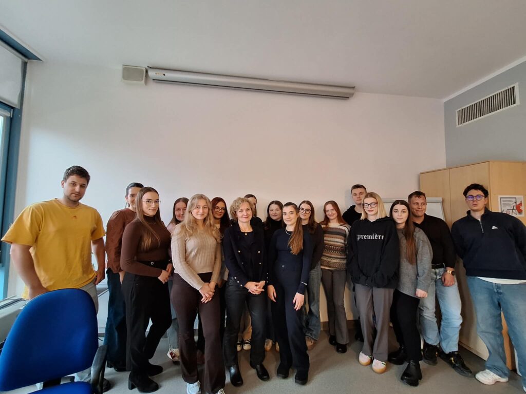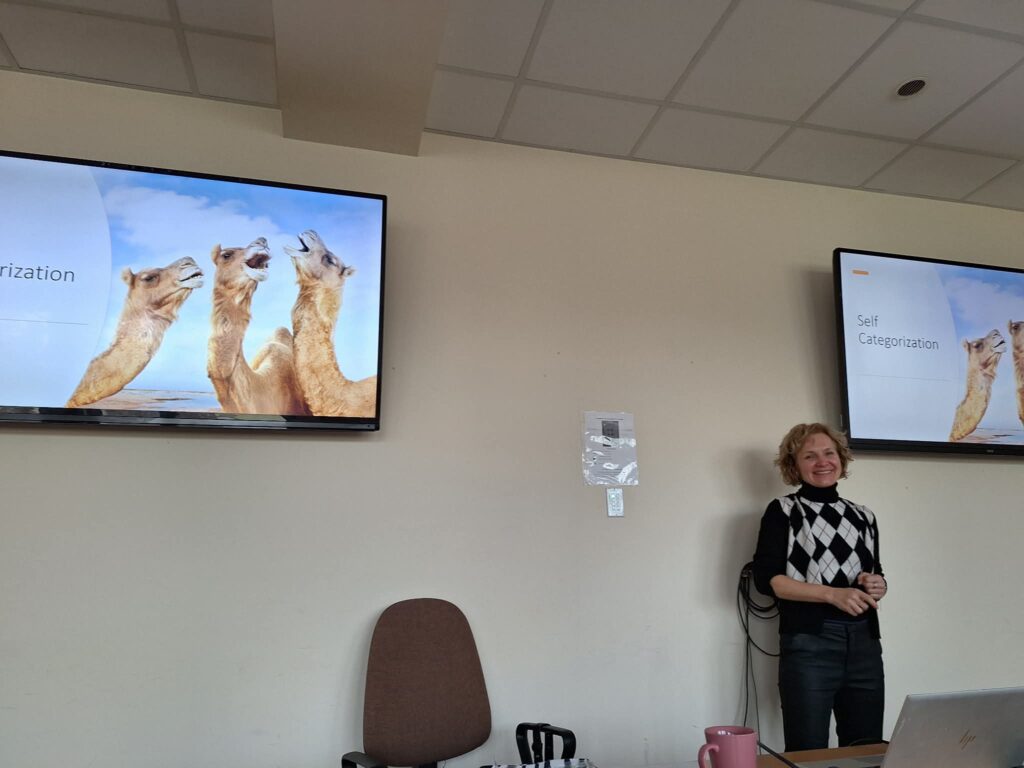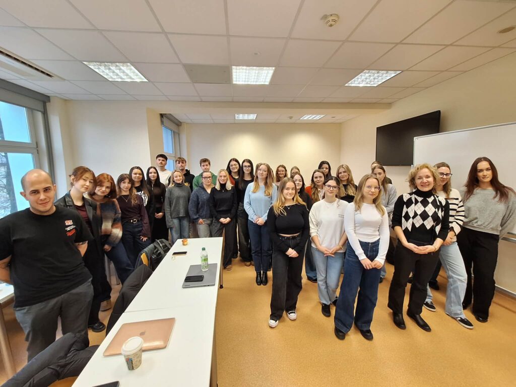 Podczas spotkania dr Anna Thompson podzieliła się praktycznymi spostrzeżeniami wynikającymi z pracy w zespołach zróżnicowanych kulturowo, omawiając wyzwania oraz dobre praktyki związane z inteligencją kulturową, komunikacją międzykulturową, budowaniem zaangażowania i efektywnym przywództwem. Jej wieloletnia aktywność zawodowa i życiowa w różnych kontekstach kulturowych – od Afryki, przez Amerykę Północną, po Bliski Wschód i Azję – umożliwiła zaprezentowanie studentom praktycznego, globalnego spojrzenia na zarządzanie zespołami wielokulturowymi. Spotkanie stanowiło cenne uzupełnienie wiedzy teoretycznej, pozwalając studentom skonfrontować omawiane zagadnienia z realiami współczesnego biznesu międzynarodowego.