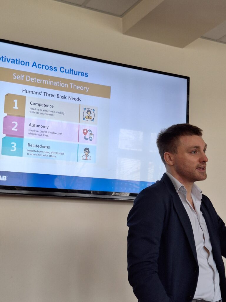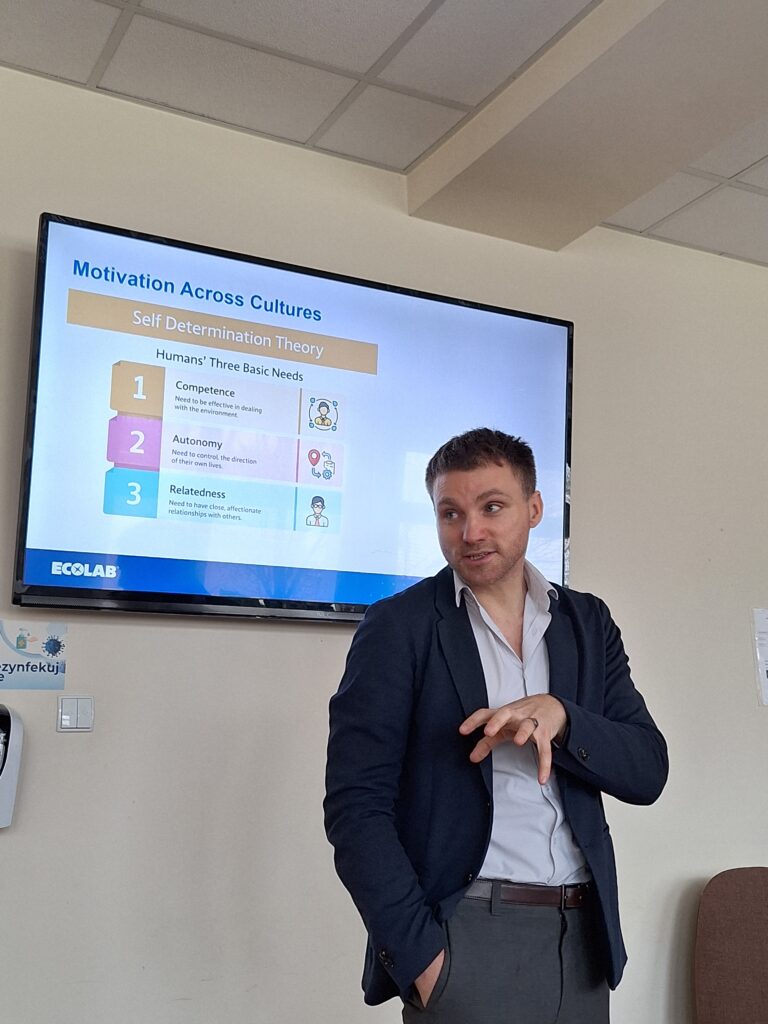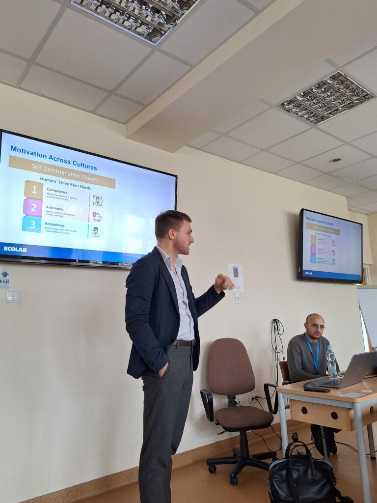 W dniu 7 stycznia 2026, studenci I roku kierunku Zarządzanie Międzynarodowe mieli okazję spotkać się z praktykami biznesu z firmy Ecolab podczas interaktywnej sesji poświęconej zarządzaniu zespołami wielokulturowymi.